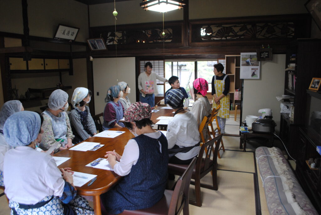 写真は老舗醤油屋さん浦野醤油さんで塩麹を作っています!麹とは?発酵食品の効果とは?背景知識から教えてくださるのでとても勉強になりますね。